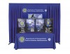 Display Backdrop, estructura de aluminio de 3 m de ancho, con cortinas de color impreso en el centro al igual que el mantel